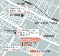 中央キャンパス、浜甲子園キャンパス、上甲子園キャンパスは共に阪神電車やJRの最寄り駅から徒歩圏内。